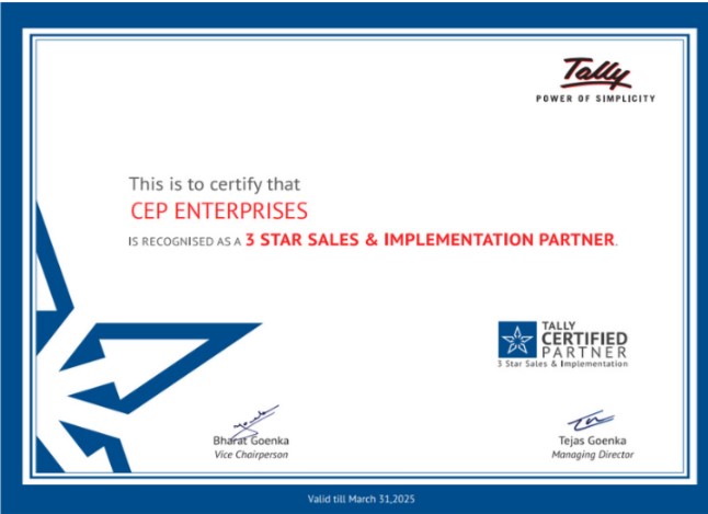 CEP Enterprises is an officially authorized TallyPrime Partner, certified by Tally Solutions Pvt. Ltd. to provide genuine software, expert implementation, and ongoing support.